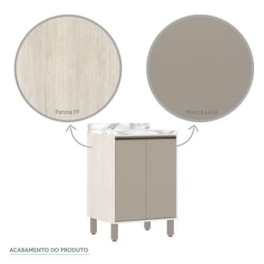Características: Produzido em MDP 15mm Corpo/Caixaria: Patina FF (Finish Foil) Frontais: Avela FF (Finish Foil) Frontais: Mocca Laca Dobradiças: Metálicas 35 mm Slowmotion (com amortecedor) Puxadores: Alumínio Tipo Gola - Inox Portas: 2 Prateleiras: 1 Pés: P S - Champagne Tampo: Em MDP 25mm acabamento BP na cor Mármore Rodatampo: Em MDP 25mm acabamento MP na cor Mármore