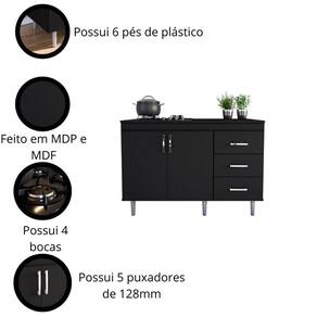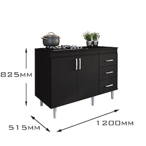 Balcão em Mdp Para Cooktop 1,20m 5 Bocas 2 Portas E 3 Gavetas Turim