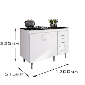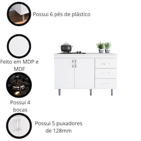 Balcão em Mdp Para Cooktop 1,20m 5 Bocas 2 Portas E 3 Gavetas Turim