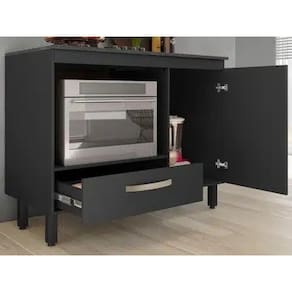 Balcão Cooktop e Forno Fit Com 01 Porta e 01 Gaveta PretoO Balcão para cooktop da Nicioli FIT é o ideal para quem deseja otimizar o seu espaço com muita praticidade em sua cozinha, o balcão vem com o tampo furado para um cooktop padrão de até 4 bocas, possui uma gaveta com corrediça telescópica e um aplo espaço para um forno.Características e DimensõesAltura: 0,84mLargura: 1,05mProfundidade: 0,53mCaracterísticas:Espaço para Cooktop: Padrão 4 bocas nas medidas Altura: 0,36m X Largura 0,54m (com extensão para 5 bocas nas medidas Altura 0,36m x Largura 0,60m)Espaço forno 0,42 x 0,62Corrediça telescópicasTampo já vem cortado para 4 bocas e pré marcado para 5 bocas.01 Porta e 01gaveta Sobre as imagens ilustrativas:- As imagens ambientadas são meramente ilustrativas e podem apresentar itens que não compõe o produto. - Objetos decorativos que aparecem na foto não acompanham o produto. - As cores do produto podem variar de acordo com o monitor, a iluminação do ambiente ou sua percepção visual. - Atenção: pequenos detalhes e acabamentos, que não ficam evidentes na foto, estão detalhados na descrição dos móveis. Sobre a entrega e montagem: - Os móveis são entregues desmontados
