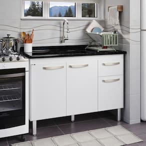 A linha Flat para cozinha e a combinacao de beleza e praticidade. Foi desenvolvido especialmente para atender aqueles clientes que gostam de agilizar o seu dia a dia. O armario vai todo desmontado, com um projeto pensado em facilitar a vida do usuario, sendo facil de montar e transportar.