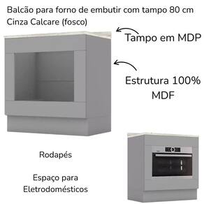 Balcao Forno Embutir Com Tampo 80 Cm Americana Cinza Calcare Henn Cinza Calcare