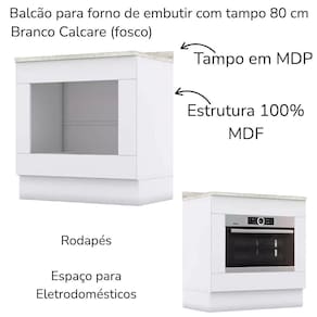 Balcao Forno Embutir Tampo Cooktop 80 Cm Americana Branco Calcare Henn Branco Calcare