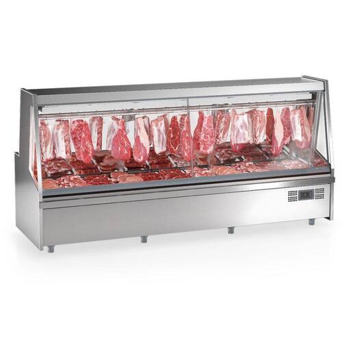 Balcão Frigorífico Premium Turino com Depósito GATP300ADAI Gelopar. Conservação e exposição de carnes não congeladas. Ideal para supermercado, açougues e similares. Temperatura: 0º a +7ºC. Refrigeração estática com evaporador aletado na parte superior e serpentina na base. Controle de temperatura: controlador eletrônico. Degelo manual. Permite montagem com prateleira aramada (2 níveis), tendal ou ambos. Iluminação: LEDs (interna), com interruptor. Tendal: Duplo em alumínio com ganchos. Bandejas em AI 430 acompanham o produto. Grades na base. Vidro frontal duplo temperado, baixo emissivo com aquecimento. Revestimento Externo: Laterais em aço injetado com pacote de vidro duplo temperado baixo emissivo, parte externa em pré-pintado em inox, parte interna aço inox espelhado. Revestimento interno em aço Inox 430. Vidros sujeitos a condensação da umidade do ar. Capacidade tendal: 50kg/metro por tendal. Capacidade base/ depósito: 50kg/metro. Capacidade das prateleiras (opcionais): 15kg/metro por prateleira. ATENÇÃO: Prateleiras não acompanham o produto. QUANTIDADE DE BANDEJAS: 11. DIMENSÕES BANDEJAS: 62,9x24x29cm. CAPACIDADE: 1546L. CAPACIDADE DO DEPÓSITO: 481L. TEMPERATURA: 0 a +7°C. CONSUMO: 19,1kWh/dia. PESO: 256kg. DIMENSÕES EXTERNAS (FxAxP): 300x146,2x96,5cm. Equipamento certificado conforme Portaria Inmetro nº 371/2009. Balcão Frigorífico Premium Turino com Depósito GATP300ADAI Gelopar é na Atau.