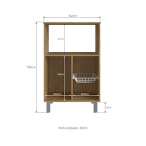 Balcão fruteira com cesto freijó, com nicho para forno e microondas, com cesto para frutas e uma porta de bater. Ideal para complementar as cozinhas, organizar as frutas e dar praticidade ao dia a dia. Suporta Granito: Não Acabamento da Porta: Pintura UV Escala de Brilho da Porta: Semi-Brilho Material do Puxador da Porta: Plástico Produto Montado: Sim Acabamento: Pintura UV Acabamento dos Pés: Polipropileno Acompanha Tampo: Não Altura dos Pés: 13 cm Ambiente Principal: Cozinha Balcão Acompanha Pia: Não Cesto para Frutas: 01 codigo_ean: 7909903342343 Complexidade da Montagem: Baixa: pode ser montado por uma pessoa sozinha Cor: Freijó Cor do Produto: Freijó Cor Interna: Freijó Escala de Brilho: Semi-Brilho Espessura do Material da Estrutura: 12 mm Itens Inclusos: 1 Balcão, Kit Ferragens e Manual de Montagem Manual de Montagem e Instalação: https://product-hub-prd.madeiramadeira.com.br/855214/documents/f62c69ae-94a9-41a6-b8e3-c456755c469a1373336fruteira.pdf Material da Dobradiça/Corrediça da Porta: Alumínio Material da Porta: MDP Material do Cesto: Plástico Material dos Pés: Polipropileno modular: Não Montagem Flex: Não Necessita Montagem: Sim O Balcão Acompanha Pia: Não Origem do Produto: Nacional Pés Reguláveis: Sim Peso: 16,5 kg Possui Pés: 04 Possui Portas: Sim Possui recorte para Cooktop: Não Recomendações de Uso, Manutenção e Limpeza: Usar pano seco e macio para limpeza de superfícies. Sapatas Niveladoras: Sim Sistema de Montagem: Parafusos, cavilhas Suporta Até (kg): 15 kg Tipo de Dobradiça/Corrediça da Porta: Simples Tipo de Porta: Bater Tipo de Puxador da Porta: Externo