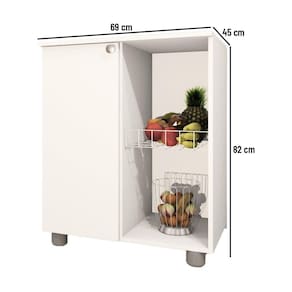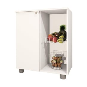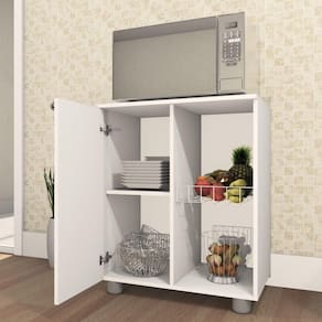 Em busca de mais espaço, praticidade e organização para a sua cozinha? O Balcão Fruteira Âmbar é um módulo compacto e perfeito para armazenar itens e mantê-los acessíveis e frescos. Com um design moderno e desenvolvido com materiais de ótima qualidade, este Balcão combina espaço reservado – que possui prateleira interna - e compartimento aberto – equipado com cestos aramados – e vai se tornar um coringa na rotina da sua casa Acabamento da Porta: Finish Foil Acabamento da Prateleira: Finish Foil Acabamento dos Pés: Polipropileno Altura dos Pés: 5 cm Ambiente Principal: Cozinha Complexidade da Montagem: Média: pode ser montado por mais de uma pessoa e/ou necessite de maior conhecimento para montagem Cor: Branco Cor do Produto: Branco Escala de Brilho: Semi-Brilho Escala de Brilho da Porta: Semi-Brilho Escala de Brilho da Prateleira: Semi-Brilho Itens Inclusos: 1 balcão e Manual de montagem Manual de Montagem e Instalação: https://cdn2.madeiramadeira.com.br/atributo/telasul/1803283-m701002-a4.pdf Material da Porta: MDP Material da Prateleira: MDP Material do Puxador da Porta: Poliestireno Material dos Pés: Polipropileno Material Principal: MDP Necessita Montagem: Sim Origem do Produto: Nacional Pés Reguláveis: Sim Peso: 20,16 kg Peso Máximo por Prateleira: 6 kg Porta com Fechadura: Não Possui Espelho: Não Possui Pés: 04 Possui Portas: 01 Quantidade de Prateleiras: 01 Prateleira Recomendações de Uso, Manutenção e Limpeza: - A limpeza deve ser feita com pano macio e seco ou levemente umedecido com água e sabão neutro. Não devem ser utilizados produtos como palha de aço ou qualquer material que arranhe a superfície de seu produto.- Evite guardar substâncias como sal, vinagre, limão, cebola, etc. em contato direto com o móvel.- Recomenda-se forrar as prateleiras com papel ou plástico liso nas áreas de maior atrito. Sapatas Niveladoras: Não Sistema de Montagem: Parafuso, cavilha, prego, Minifix. Suporta Até (kg): 42 kg Tipo de Armário Multiuso: Balcão Tipo de Dobradiça/Corrediça da Porta: Metálica Tipo de Porta: Bater Tipo de Puxador da Porta: Externo
