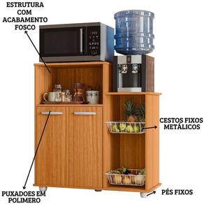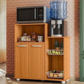 O Balcão Fruteira 2 portas é um produto compacto para seu ambiente, traz soluções para pequenos espaços pois possui amplo nicho organizador A.28cm x L.53cm x P.39cm , 2 portas de bater e prateleira interna para acomodar utensílios, 2 cestos fixos de metal para acomodar frutas e verduras de até 3kg, sua bancada pode ser utilizada para acomodar micro-ondas, filtro de água e outros utensílios domésticos, puxadores em polímero, dobradiças reforçadas de 26mm, pés PVC 5cm fixos para melhor sustentação do produto, em MDP 15mm com acabamento em pintura UV. Funcionalidade que combina com os mais variados ambientes. Este móvel chegará em sua casa separado em 1 volume.