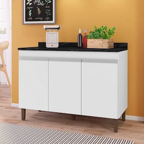 Balcão Gabinete 119cm 3 Portas com Tampo Karen Branco - SSX Multicoisas