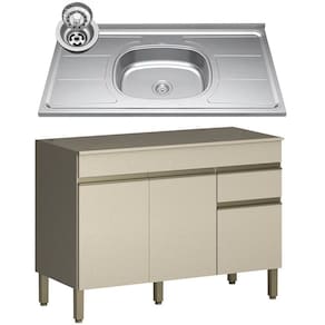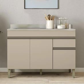 Conheça agora o Balcão Gabinete 3 Portas com Pia 120cm Lina K02 Vanilla, da Mpozenato, um móvel prático e funcional para a sua Cozinha.