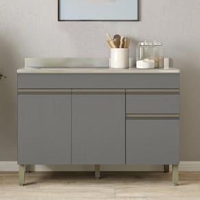 Se precisa de um móvel prático e funcional, o Balcão Gabinete 3 Portas com Pia 150cm Lina K02 Gris, da Mpozenato, é ideal para a sua Cozinha.
