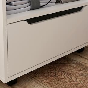Balcão Gabinete 60 cm 1 Gaveta e 4 Rodízios BN3647, possui design retrô e sofisticado, ndo ao ambiente ar de requinte e muita modernidade. Estrutura em MDP de 15mm, proporcionando maior durabilidade e resistência a peça, contando com acabamento em pintura UV (semi - brilho). Composto por 1 gaveta com frente usinada e corrediças metálicas, acompanha 4 rodízios. Suportando 15kg o tampo e 3kg a gaveta. Perfeito para deixar seu ambiente produtivo, proporcionando uma ambientação elegante e versátil. Este móvel chegará na sua casa separado em 1 volume.