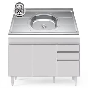 Procurando funcionalidade para sua cozinha? Vem conhecer o Balcão Gabinete com Pia Inox 120cm Michigan Branco, da Lumil!