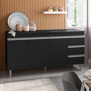 Renove sua cozinha com quem entende. O Balcão Andréia da AJL é a opção certa para você que procura qualidade e beleza em um só produto. Com este gabinete seu ambiente ficará completo e elegante do jeitinho que você sempre sonhou. Produzido em MDP, o balcão possui acabamento em UV, que garante beleza e muito mais durabilidade ao produto, além de 3 portas convencionais, 3 gavetas com corrediças metálicas, puxadores embutidos e tampo na cor Onix brilhante, não é demais? Sua cozinha merece o melhor! Qualidade e tradição que só a AJL tem. Compre já!