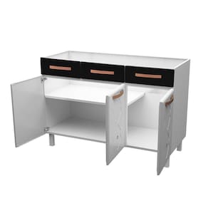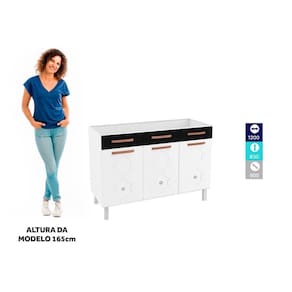 O Balcão triplo Mirage New conta com um amplo espaço disponível para armazenar panelas e utensílios de maneira organizada em sua cozinha. Ele possui duas gavetas equipadas com corrediças metálicas, que abrem e fecham facilmente, além de uma frente falsa para pia. A parte interna é produzida em polipropileno, o sejam um plástico rígido e durável, que comporta até 5kg de peso. Os puxadores e apliques resinados na cor Cobre Fosco dão um ar sofisticado para a peça. Fabricado em aço, este balcão recebe pintura eletrostática e anticorrosiva, com acabamento brilhoso. O tratamento recebido na pintura garante resistência e durabilidade ao móvel. Leve mais beleza e funcionalidade para a sua casa com o Balcão Mirage New!