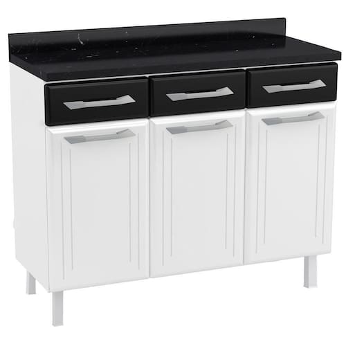 O Balcão triplo de aço Topázio é pura versatilidade na cozinha: possui 3 gavetas para a acomodação de talheres, tolhas de mesa, panos de prato e outros utensílios de rotina. A estrutura da gaveta é de polipropileno, um plástico muito rígido, resistente e fácil de lavar. O tampo é desenvolvido em MDP, com revestimento laminado que garante qualidade e resistência. O Balcão Topázio é feito em aço, por isso não cria fungos e nem parasitas. Ele passa por um rigoroso processo de pintura eletrostática, que confere proteção contra a ferrugem garantindo mais durabilidade e resistência. Além de toda qualidade, o produto tem acabamento brilhoso que traz um toque de sofisticação e personalidade ao ambiente.
