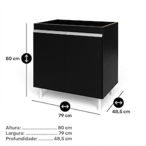 Balcão Gabinete Cozinha Multiuso Lux 79cm 100% MDF 02 Portas Sem Tampo