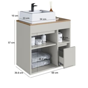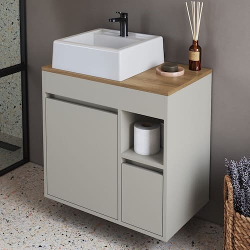 Conheça o balcao gabinete para banheiro Art In Móveis, desenvolvido para otimizar o espaço e guardar pertences. Aproveite! Este produto foi produzido em excelente material MDP de madeira reflorestada ecologicamente correta e com acabamento Finish Foil Acetinado, que garante maior resistência e qualidade em seu móvel. A essência de criar soluções que trazem mais conforto sua vida. Esse é o grande diferencial dos produtos Art In Móveis. Cada nova ideia é uma mistura de criatividade, funcionalidade e muita dedicação. Produto acompanha cuba. Acabamento da Cuba: Liso Acabamento da Gaveta: Finish Foil Acabamento da Porta: Finish Foil Acabamento da Prateleira: Finish Foil Acompanha Cuba: Sim Acompanha Manual de Instalação: Sim Acompanha Parafusos Para Fixação Na Parede: Sim Acompanha Válvula: Não Ambiente Principal: Banheiro codigo_ean: 7900288277473 Complexidade da Montagem: Média: pode ser montado por mais de uma pessoa e/ou necessite de maior conhecimento para montagem Comprimento da Prateleira: 37 cm Cor: Arenas Cor da Cuba: Branco Cor da Porta: Bege Cor do Produto: Arenas Cor Flex: Não Cor Interna: Arenas Escala de Brilho: Fosco Escala de Brilho da Gaveta: Fosco Escala de Brilho da Porta: Fosco Escala de Brilho da Prateleira: Fosco Espessura da Prateleira: 1,5 cm Formato da Cuba: Retangular Furação para Cuba e Torneira: Não Gaveta com Chave: Não Itens Inclusos: 1 Gabinete, 1 Cuba, Kit Ferragem e Manual de Montagem Linha ou Coleção: Banheiro Manual de Montagem e Instalação: https://product-hub-prd.madeiramadeira.com.br/636322440/documents/2f96e97b-54a8-41a1-83de-57b4fc34e6693297712522517617394576792.pdf Marca: Art in Móveis Material da Cuba: Mármore Sintético Material da Gaveta: MDP Material da Porta: MDP Material da Prateleira: MDP Material do Tampo: MDP Material Principal: MDP Medida da Cuba (C x L x P): 10x34x33 Montagem Flex: Não Necessita Montagem: Sim Origem do Produto: Nacional Peso: 19,7 kg Peso Máximo por Gaveta: 5 kg Peso Máximo por Prateleira: 5 kg Possui Espelhos: Não Possui Nichos: 01 Possui Pés: Suspenso Possui Prateleiras: Sim Possui Recorte No Tampo Para Cuba: Não Possui Recorte No Tampo Para Misturador: Não Possui Sifão: Não Possui Tampo: Sim Possui Tampo de Vidro: Não Produto Montado: Sim Quantidade de Gavetas: 01 Recomendações de Uso, Manutenção e Limpeza: Para a limpeza do móvel utilizar pano levemente umedecido Resistente à Chuva: Não Sapatas Niveladoras: Não Sistema de Montagem: Parafusos, cavilhas e minifix Suporta Até (kg): 30 kg Tamanho do Gabinete: Médio: de 60cm a 80cm de largura Tamanho do Produto: 57x60x36,6 Tipo de Corrediça da Gaveta: Metálica Telescópica Tipo de Cuba: Sobrepor Tipo de Dobradiça/Corrediça da Porta: Metálica Tipo de Gabinete: Gabinete Suspenso Tipo de Móvel para Banheiro: Gabinete com Cuba Tipo de Móvel para o Banheiro: Gabinete de Banheiro Tipo de Porta: Bater Tipo de Puxador da Gaveta: Não Possui - Abertura por Fecho Toque Tipo de Puxador da Porta: Não Possui - Abertura por Fecho Toque Tipo do produto: Gabinete Válvula indicada: Válvula padrão 7/8 saida