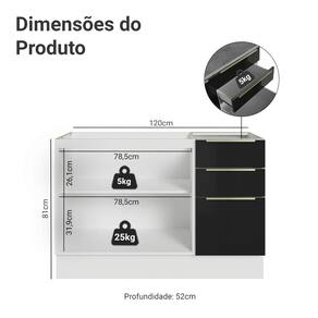 - Um Balcão de 120 cm de largura com duas portas e três gavetas (Não acompanha tampo)
