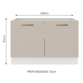 Este Balcão de Pia de 120 cm da linha Agata da Madesa possui duas portas e é fabricado com materiais de padrão superior, como puxadores com alça em alumínio e dobradiças metálicas com amortecimento.