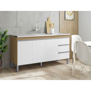 Características: Material da Estrutura: MDP Acabamento: Pintura UV Escala de Brilho: Fosco Possui 3 portas Possui 3 gavetas Dobradiças em aço Puxadores embutidos Pés em PVC Corrediças metálicas Design moderno Acompanha Tampo: Não