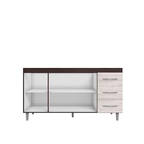 O Balcão Gabinete de Pia 150cm Isabel 3 Portas 3 Gavetas da AJL Móveis é uma excelente peça para ser utilizada na sua cozinha e organizar seus utensílios. Conta com estrutura em MDP/MDF, 4 portas convencionais com amplo espaço interno e 2 gavetas para melhor auxiliar nessa tarefa, além disso, seu acabamento em pintura UV garante maior durabilidade e resistência.