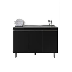Características: Material da Estrutura: MDP Acabamento: Pintura UV Escala de Brilho: Fosco Possui 3 portas Dobradiças em aço Puxadores embutidos Pés em PVC com regulagem Corrediças metálicas Design moderno Acompanha Tampo: Não