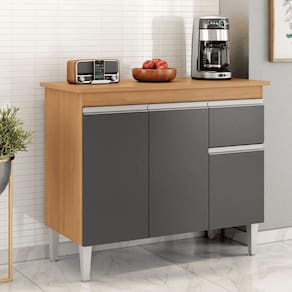 Balcão Gabinete De Pia Para Cozinha Sem Tampo 100cm Tatiane Amêndoa/preto- Mabe Magazine - Blush