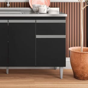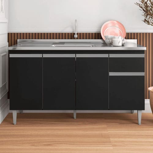 Balcão Gabinete De Pia Para Cozinha Sem Tampo 150cm Tatiane Preto- Mabe Magazine
