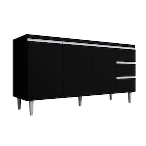 Balcão Gabinete De Pia Para Cozinha Sem Tampo 160cm 3 Portas Andréia Preto Fosco- Mabe Magazine