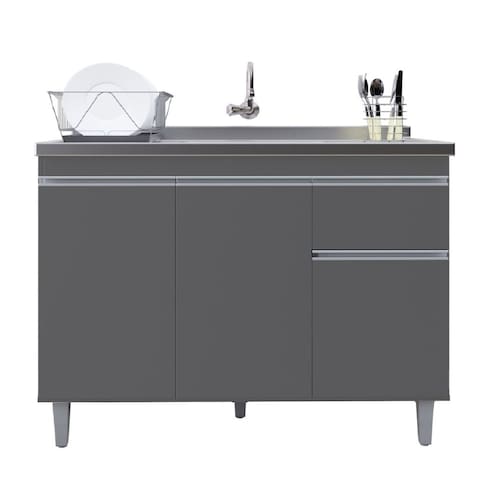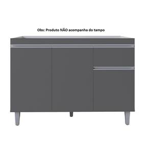 Características: Material da Estrutura: MDP Acabamento: Pintura UV Escala de Brilho: Fosco Possui 3 portas Possui 1 gaveta Dobradiças em aço Puxadores embutidos Pés em PVC com regulagem Corrediças metálicas Design moderno Acompanha Tampo: Não
