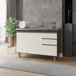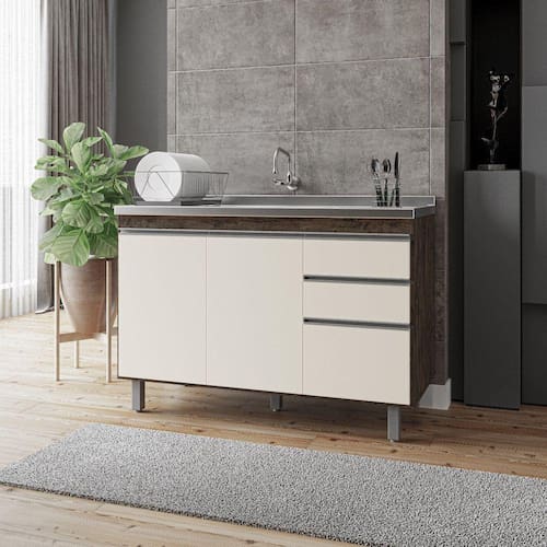 Balcão Gabinete de Pia Premium 120cm Chocoleta/Off Wite S/ Tampo - Nathan - Off White