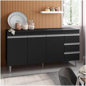 O Balcão é uma peça muito importante na cozinha, e ele possui estrutura em MDP e acabamento em pintura UV, ou seja, é uma ótima alternativa para os fãs de durabilidade e resistência. Além disso, ele também apresenta 3 portas convencionais e 3 gavetas de deslize suave e amplo espaço interno para guardar seus utensílios, te auxiliar e deixar sua rotina ainda mais dinâmica. Tudo de bom, né?