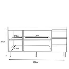 Dimensões do Produto (Largura x Altura x Profundidade)Balcão: 159 x 86 x 52 cm.