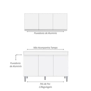O Balcão Gabinete de Pia 120cm 3 Portas e Aéreo 3 Portas Manu - AJL Móveis integra-se com os demais móveis para criar um ambiente perfeito. Este Balcão com Tampo pode armazenar desde ingredientes, potes, acessórios e o que sua necessidade precisar. Tudo isso com estilo e praticidade você vai contar. Agora é o momento perfeito de adquirir este lindo Balcão e funcional para agregar charme, beleza e sofisticação para sua cozinha. Não perca esta oportunidade, peça já o seu.