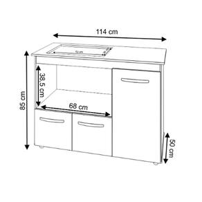 Balcão Gabinete de Cozinha Para Fogão Cooktop 4 bocas e Forno 3 portas Ana da Moblis Móveis foi projetado para proporcionar a você cliente, um móvel de qualidade, extrema utilidade além de deixar o seu ambiente ainda mais agradável. Conta com uma porta lateral para armazenar seus utensílios maiores e duas portas na parte inferior para os itens menores, facilitando a sua vida de todas as formas possíveis.Dimensões:Altura: 85 cm (Altura do produto com os pés)Altura sem os pés:80cmLargura:114 cmProfundidade: 50 cmDimensões do Nicho (Recorte para encaixar o cooktop): 53 x 36 cmEncaixe do Forno: 38,5 x 68 cmCaracterísticas:Material: MDPPortas: 3 PortasPuxadores: 3 puxadores plásticos cromadosPés: 4 pés reguláveis de plástico.Altura dos pés: 5 cmRegulagem dos pés: Não tem regulagemObservações importantes:Acompanha cooktop: NãoAcompanha tampo: SimNecessita montagem: SimAcompanha manual de montagem: Sim Marca: Balcão Gabinete Multiuso Para Cozinha Liza Sa