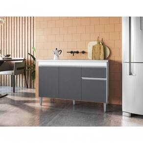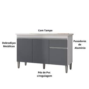 Características do ProdutoMaterial da Estrutura: 100% MDPPeso Suportado: 28 Kg distribuídosPossui Tampo: SimAcabamento: Pintura UVPossui Portas: SimQuantidade de Portas: 3 PortasMaterial da Porta: MDPTipo de Porta: ConvencionalPossui Gavetas: SimPossui Puxadores: SimTipo de Puxador: CavaMaterial dos Puxadores: PVCPossui Pés: Sim