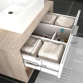 É produzido com excelentes materiais e acabamento impecável, cabe mencionar ainda as corrediças telescópicas na gaveta, que por sua vez conta com 3 divisórias internas, além de criar um contraste maravilhoso com a cor do balcão. Pode ser disposto em banheiro, lavabo ou outro cômodo de sua preferência. Aproveite!