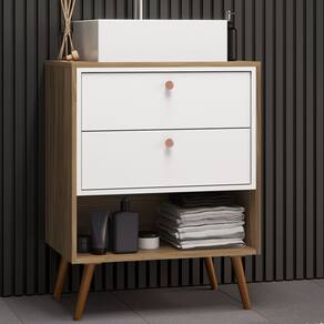 O Balcão apresenta quatro pés em polímero ABS e duas gavetas com amplo espaço interno e divisórias que facilitam a organização dos seus itens. O manuseio também é tranquilo graças as corrediças telescópicas e os puxadores em formato redondo, que oferecem um toque sofisticado ao móvel. Além disso, o nicho amplo também serve como espaço para guardar seus objetos de higiene ou decoração! É todo fabricado em MDP de alta qualidade.