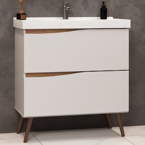 Espaço e elegância de sobra! O Balcão Gabinete Para Banheiro Com Pés e Lavatório Evie pode te oferecer esses atributos e muito mais, confira as vantagens de ter um produto sustentável da Lyam Decor no seu banheiro ou lavabo.