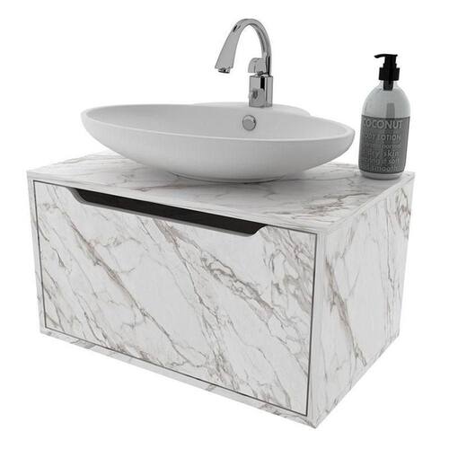 Balcão Gabinete para Banheiro Suspenso BN3646 Mármore Branco - Tecnomobili