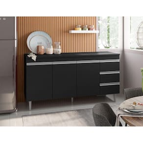 excelente espaço interno para armazenar seus utensílios. Possui 3 Portas, 3 gavetas, pés feitos de