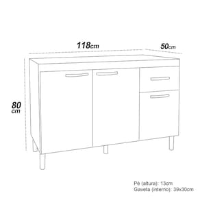 CARACTERÍSTICAS - Acabamento interno e externo em pintura UV - Dobradiças metálicas de pressão 26mm - Gaveta com corrediças metálicas - Pés em PVC