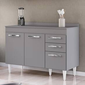 Na hora de escolher o móvel que vai compor o ambiente é preciso estar atento, afinal com cozinhas cada vez menores, deve ser compacto e funcional assim como o Balcão Gabinete Para Pia 120cm 3 Portas com Tampo Suécia Cinza, da Lumil.