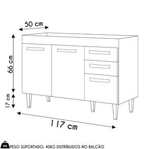 Esse Balcão Para Pia conta com 3 portas e 2 gavetas conta com uma prateleira interna excelente para organizar seus utensílios. Os puxadores são em PVC cromado, resistentes e fáceis de limpar, as dobradiças e corrediças são metálicas, garantido ainda mais qualidade. Além disso, a estrutura do Balcão Gabinete é feito em MDP com revestimento em BP, o que resulta em um acabamento resistente e duradouro. Ah, e os pés reguláveis de PVC facilitam o ajuste do móvel de acordo com o nivelamento do piso. Ele é ideal para pia ou tampo de 120cm, assim fica livre para escolher o que melhor se encaixa ao seu ambiente!