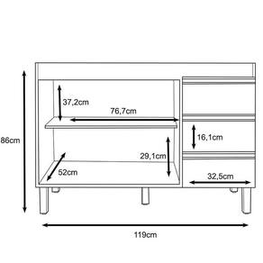 O Balcão é produzido em MDP de 15mm, um material de alta qualidade, ele tem acabamento em pintura UV que protege a superfície e é super moderno. O fundo é em MDF 2,8mm garantindo a estabilidade e a firmeza do móvel. O Balcão tem 2 portas com dobradiças metálicas, que abrem e fecham com facilidade e sem ruídos. Conta com 3 gavetas e as corrediças são metálicas, que deslizam suavemente e oferecem um ótimo espaço para guardar seus utensílios e mantimentos. Os puxadores são em PVC, um material resistente e fácil de limpar. Possui uma prateleira em MDP, que divide o espaço interno e permite uma melhor organização. O Balcão Gabinete tem pés reguláveis, que permitem ajustar a altura do móvel de acordo com o seu piso e a sua preferência. Ele é ideal para você que quer renovar a sua Cozinha com praticidade e estilo.
