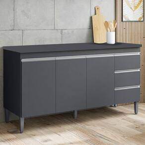 **ACOMPANHA TAMPO. Características do Produto Material da Estrutura: MDP 15 mm. Material do Fundo: MDF 3 mm. Peso Suportado: 48 Kg distribuídos. Acompanha Pia: Não. Acompanha Tampo: Sim. Acabamento: Pintura UV. Escala de Brilho: Fosco. Quantidade de Portas: 3 Portas. Material da Porta: MDP. Tipo de Porta: Convencional. Quantidade de Gavetas: 3 Gavetas. Material da Gaveta: MDP. Tipo de Puxador: Alumínio. Tipo de Corrediças: Metálicas. Possui Prateleiras: Sim. Quantidade de Prateleiras: 1 Prateleira. Material da Prateleira: MDP. Possui Pés: Sim. Quantidade de Pés: 5 Pés. Tipo de Pés: PVC com regulagem. Diferenciais: - Design moderno. - Pés ajustáveis. Sistema de Montagem: Cavilhas/Parafusos. Manual de Montagem: Sim. Complexidade da Montagem: Média. Volumes: 2 Volumes. Conteúdo da Embalagem: 1 Balcão, 1 Tampo. Garantia do Fabricante: 90 dias contra defeito de fabricação. Montagem: Recomendamos que seja feita por um profissional. Recomendação de Limpeza: Utilize pano úmido.
