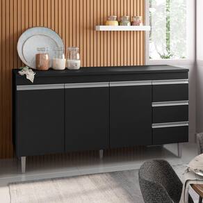 O Balcão é uma peça muito importante na cozinha, e ele possui estrutura em MDP e acabamento em pintura UV, ou seja, é uma ótima alternativa para os fãs de durabilidade e resistência. Além disso, ele também apresenta 3 portas convencionais e 3 gavetas de deslize suave e amplo espaço interno para guardar seus utensílios, te auxiliar e deixar sua rotina ainda mais dinâmica. Tudo de bom, né?