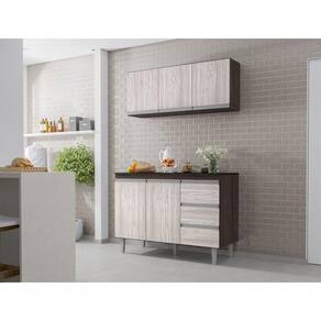 Balcão Gabinete Para Pia Andreia E Armário Aéreo Andreia 120 Cm Marrom