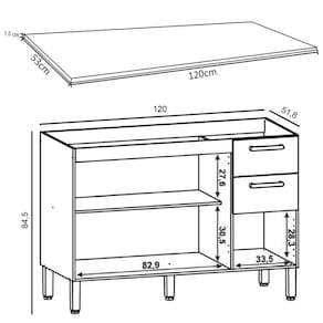 Balcão: 120 cm x 84,5 cm x 51,8 cm.