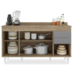 Mas as qualidades desse Balcão de cozinha não param por aqui, com um amplo espaço interno para não deixar de lado a organização, já que conta com 4 portas, 1 prateleira interna e 2 gavetas para você dispor panelas, louças e os utensílios de cozinha que precisam estar sempre ao alcance das mãos.